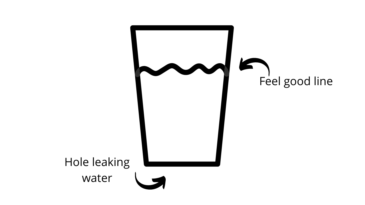 Now also imagine that there is a hole in the bottom of this cup that is constantly leaking water. So, your child is taking matters into his or her own hands and going to engage in activities to fill the cup back up to the "feel good" level.